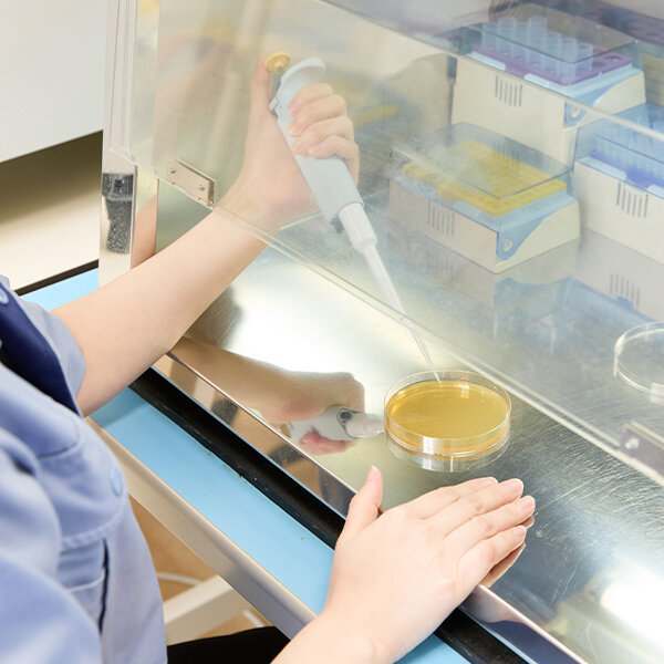 私の1日の業務は、出社後の部内ミーティングから始まります。その後、試験方法の立案や実施を進め、共同研究先の企業と定期的に打ち合わせも行います。研究では、滅菌機やクリーンベンチを備えたレンタル施設にこもり、実験を行うこともあります。一方で、補助金を活用するプロジェクトでは、申請書や報告書の作成支援も担当しています。