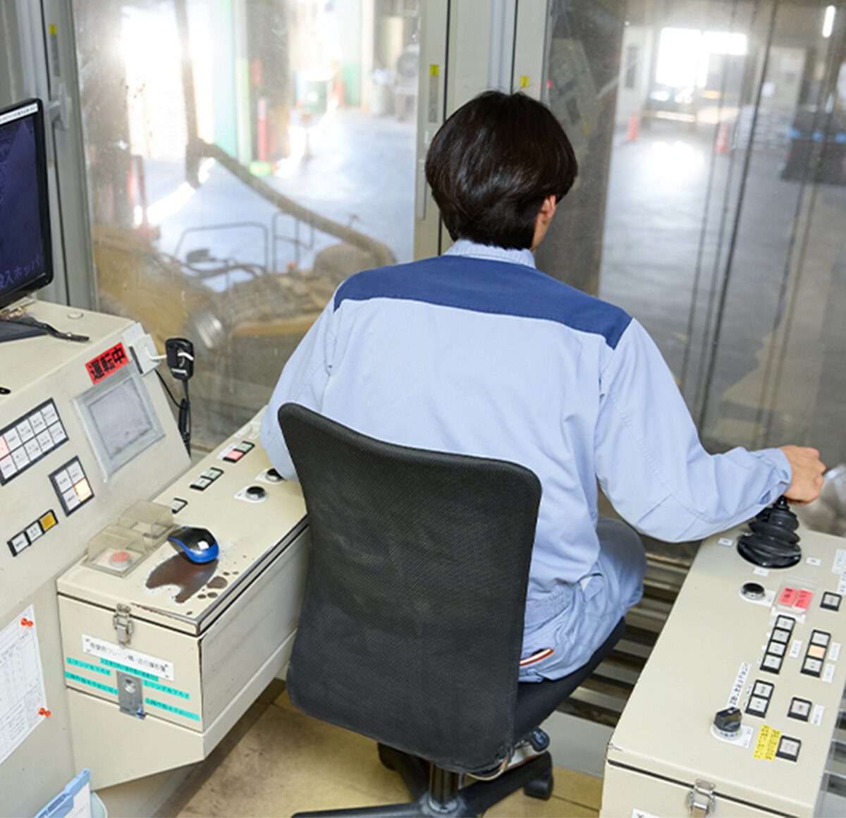 技能職の仕事は、リサイクル設備の運転・保守を最前線で担い、制御室での数値監視と現場での点検・修繕を両立。